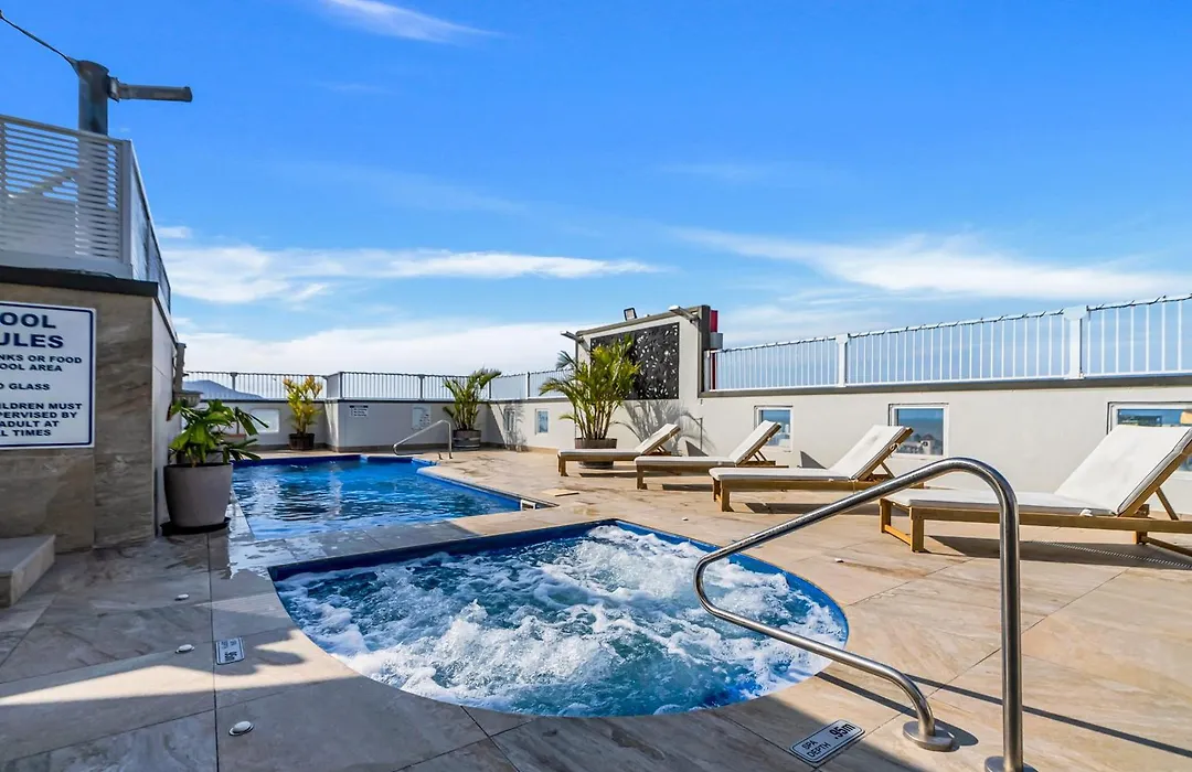 ベッドルーム1室のCoastal Chic In Heart Of Cairns With Rooftop Poolアパートは、ケアンズ・エスプラネード・ラグーンから徒歩で19分に位置し、プールを提供しています。 ビジネスとレジャーの両方の目的でWiFiを利用できます。